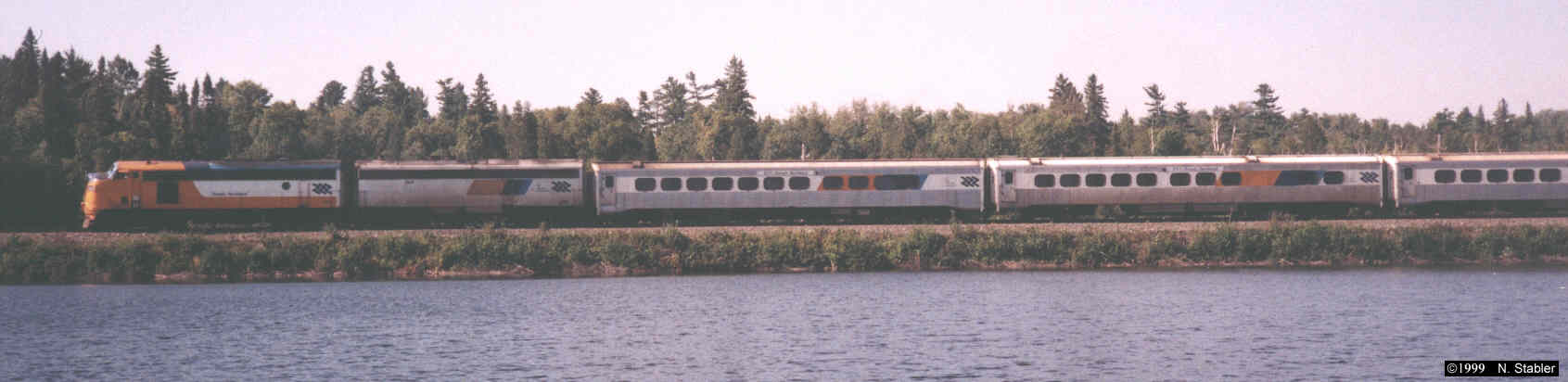| Nrthlndr | The Northlander, pulled by 2002 with EGU 202 and passenger cars. | Net Lake (Temagami) | Aug '99 | Neil Stabler |