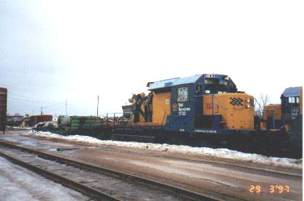 | Wreck | "Looking distinctly unlike the GMD brochure, SD40-2 1732 (GMD, 1973) awaits final disposition on the wreck track in the North Bay yard."(r@NB) | North Bay | May '99 | Mike Montag |