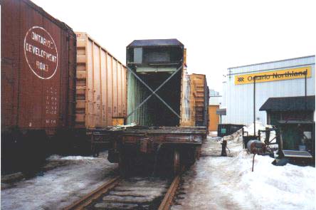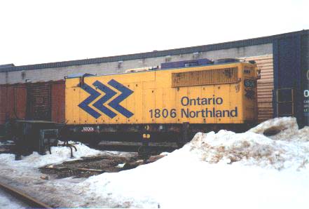 GP38-2, 1806's shell sitting on a flatcar. (2 angles) | North Bay | Mar '97 | Jim McInnes |