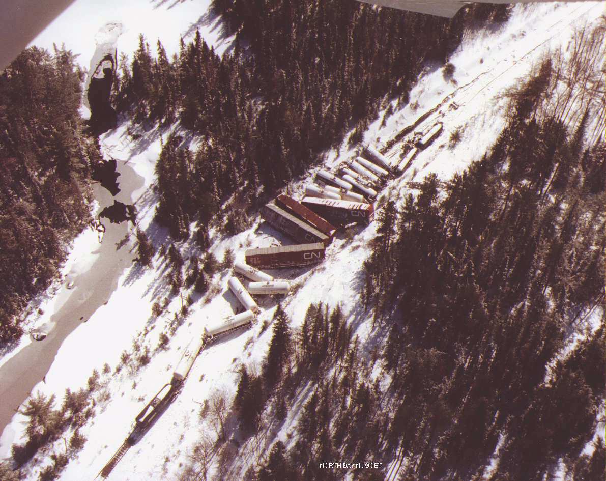 | Wreck | Overhead shot of Hornet Lake derailment - Mar '00 (ii) | Hornet Lake | Mar '00 | North Bay Nugget |