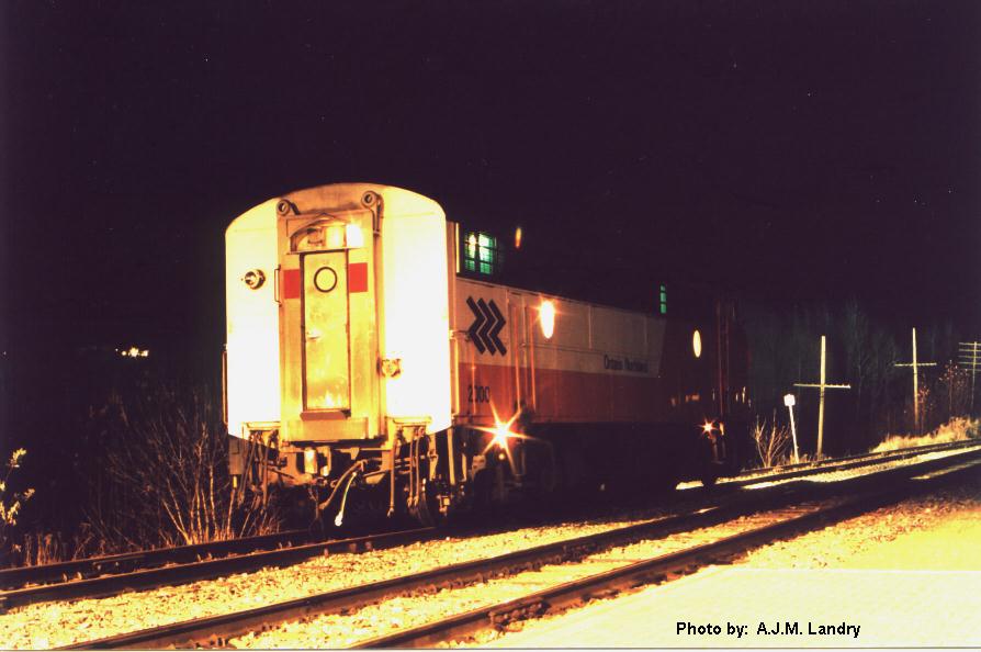 | Rear | Rear 3/4 shot of FP7A idling. | North Bay | Nov '00 | A.J.M Landry |