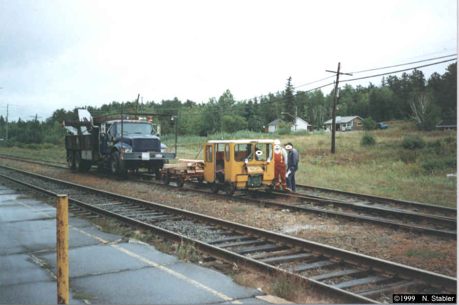 | Work | A work crew with vehicles waiting on siding. | Temagami | Sept '98 | Neil Stabler |