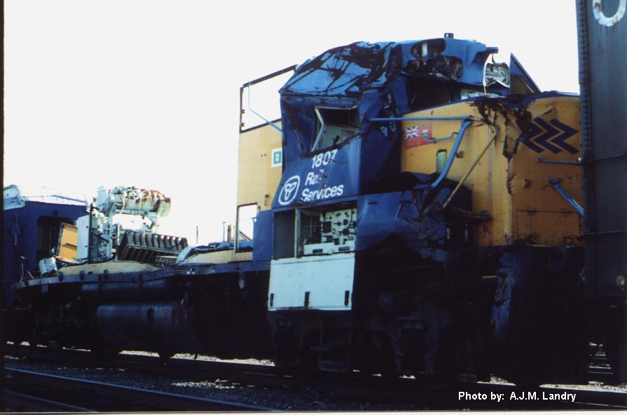| Wreck | 1807 GP-38-2 - All torn up in wrecking line. | North Bay | Oct '00 | A.J.M Landry |